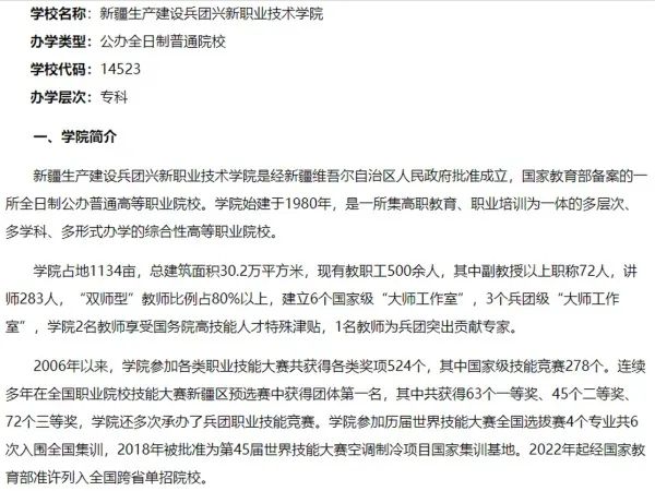 新疆生产建设兵团兴新职业技术学院2023年河北省高职单招招生简章