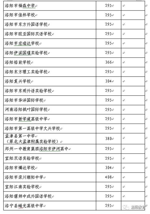 栾川县民办朝阳中学:按照河南省民办高中学校招生政策,面向洛阳市内县外招生160人。面向栾川县招生220人,录取分数线449分。