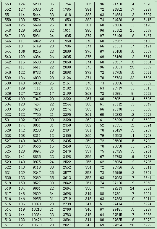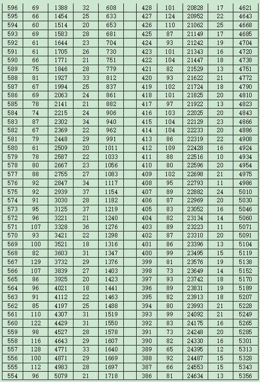 2021年市城区初中学业水平考试“一分一段”表(含北海经济开发区)